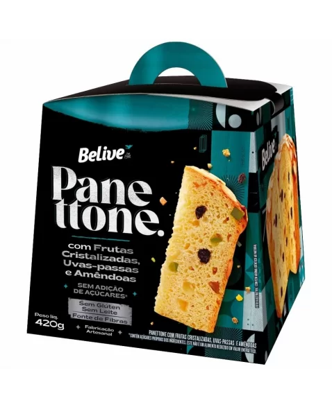 Panettone Frutas Com Amêndoas Zero Adição de Açúcares - Belive - 420g